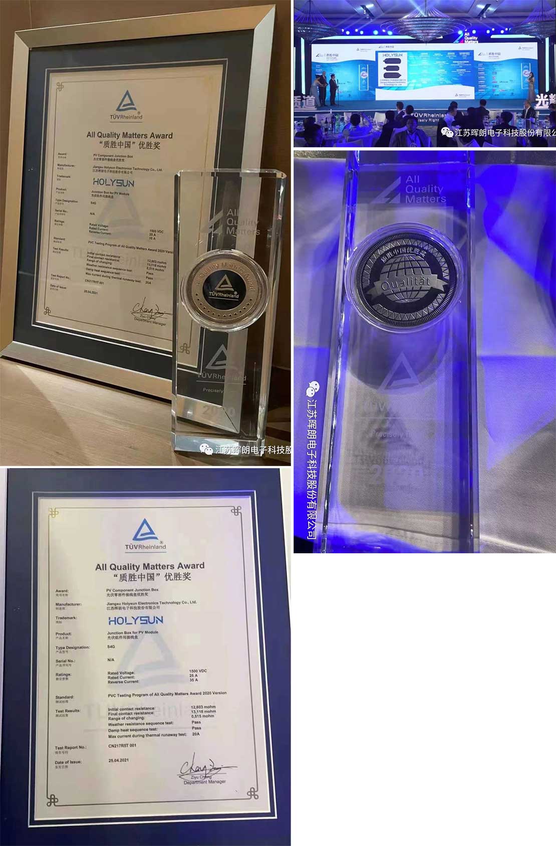 九游娱乐(JIUYOU)官方网站_9YOU GAME荣获年度TUV Rheiland质胜中国九游娱乐(JIUYOU)官方网站_9YOU GAME接线盒组唯一优胜奖!